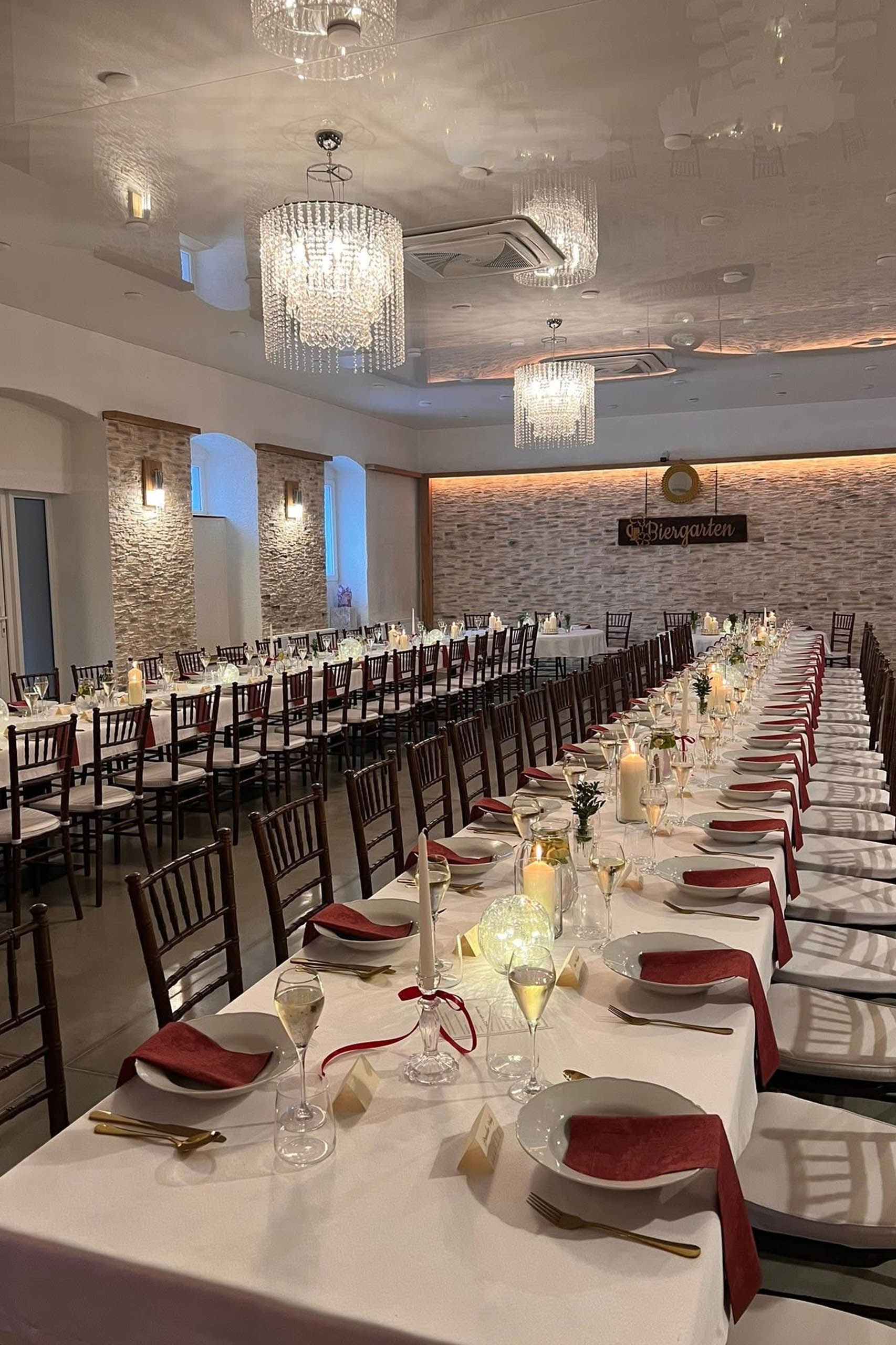Naša reštaurácia Biergarten je ideálne miesto pre usporiadanie:
